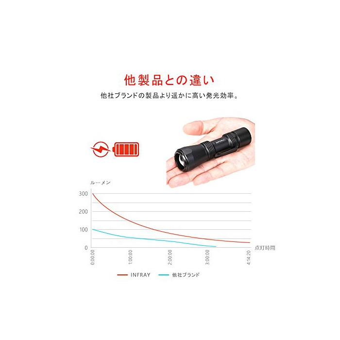 원본상품명: INFRAY LED 中電 / 超小型 フラッシュライト ( 用点時間9h / 12ケ月保 / 高輝度な米 CREE XPE2-R4 LED 搭載 / 300 ルメン 超光 / 3 ア