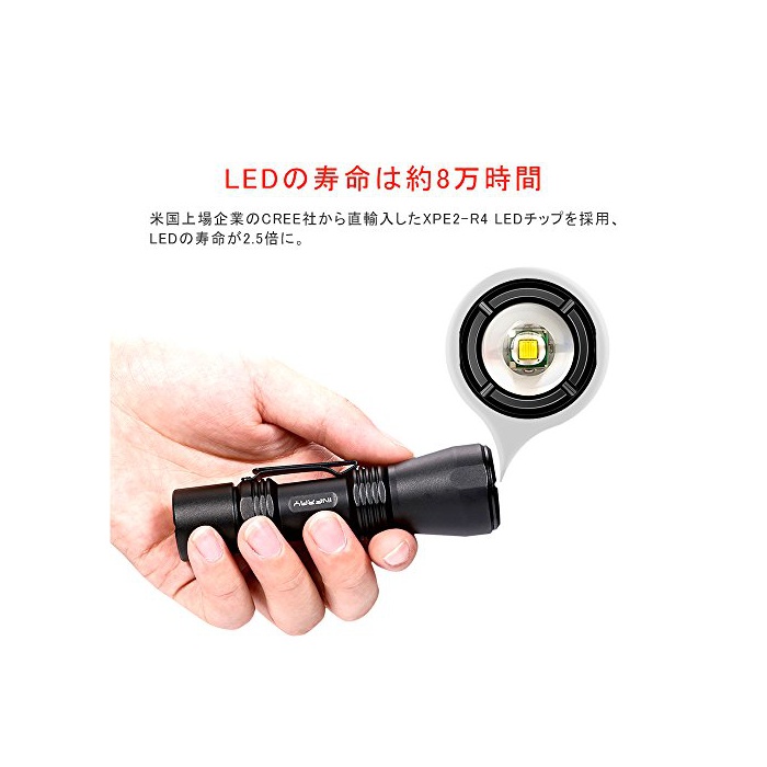 【고휘도LED】미CREE사제XPE2-R4 LED를 채용 한 것을에 의해전광다발(밝기)300루멘의 고휘도를 실현.또한,8만 시간 정도의 길이 수명(LED공식적 이름 수명의 약2.5배).