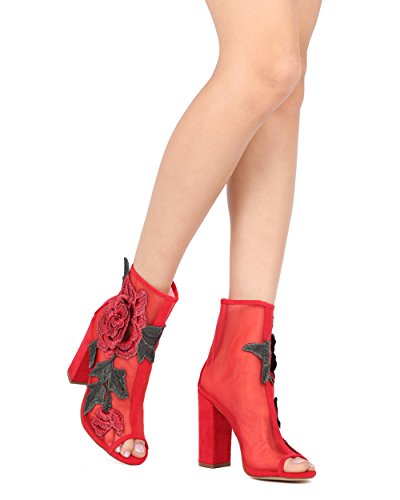 Alrisco Women Mesh Netted Peep Toe Embroidered 3D Roses Block Heel Bootie - HG14 by Liliana Col...