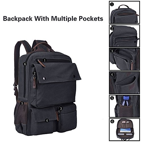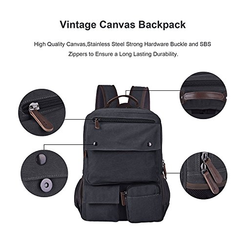 -. Title : Canvas Rucksack 15.6 Inch Laptop Backpack Casual Daypack Bookbag for Men Women
