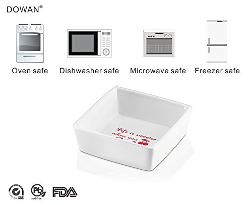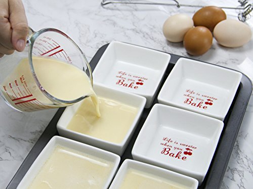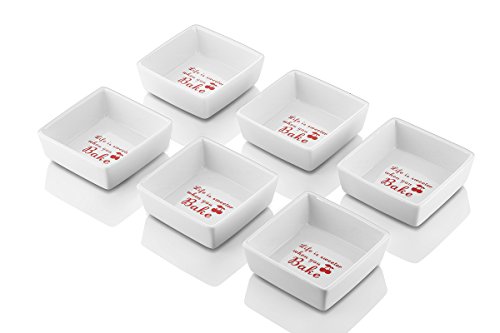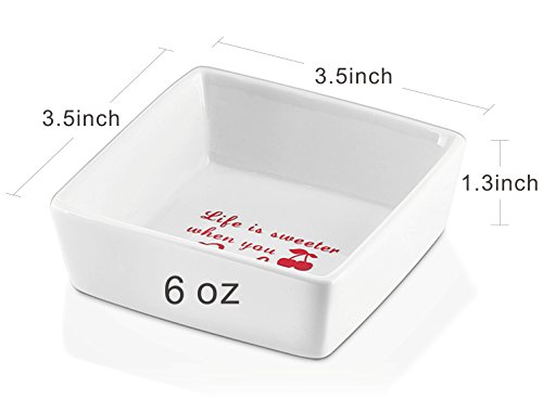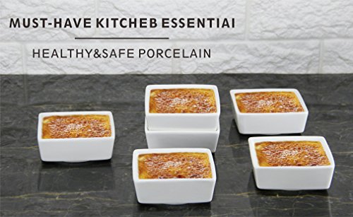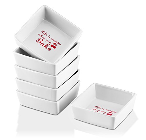 Inspired Home Baking with the Right Tool! Healthy Sturdy Porcelain These ramekins are made of top-grade porcelain (LEAD FREE)?that resists scratches and chips?with?a smooth and glossy?finish that never fades. Unlike wood and plastic, porcelain?does not absorb bacteria or smells ensuring food tastes fresh and crisp every time. Wash the ramekins?easily in the dishwasher or wash them by hand. Stackable The perfect solution to tidying up an already cluttered kitchen! These small square bowls stack on?each other conserving space in kitchen cabinets, cupboards, and countertops. Their compact stackability makes it?possible for you to?store?away?all?6pcs in a pile. StylishVersatile Liven up your table and entertain your guests with the stylish ramekins in square shapes that can be easily mixed and matched with your other dinnerware for a coordinated and fun look. With its contemporary style,?these ramekins are?one of the best oven-to-table pieces of bakeware.? Compact Size, Unlimited Possibilities As a ramekin, it can broil shrimp scampi, bake hash brown nests for eggs, individual baked desserts or quiche, warm dishes in microwave, oven.?As a multipurpose bowl, it can hold condiments for taco's and sundae's, syrup for waffles,?soy sauce for sushi, kimchi, wasabi,?and whip cream for different desserts, personal oil and balsamic vinegar, dessert for kids or individual fresh fruit parfaits,?dipping sauces for chicken nuggets, melted butter for crab legs or lobster. 0 |
