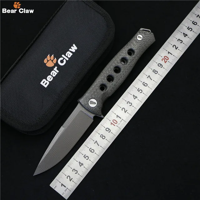 곰 발톱 박사 죽음 메이요 베어링 접는 칼 D2 티타늄 탄소 섬유 핸들 캠핑 사냥 생존 야외 EDC 도구