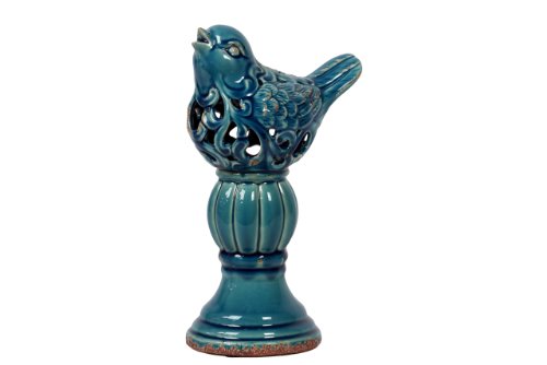 Urban Trends 10848-UT Decorative Ceramic Bird on Stand Antique Blue