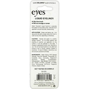 -. Binding : Health and Beauty -. Brand : LA Colors -. Color : Black -. EAN : 0081555664305 -. Feature : L.A. Colors Black Liquid Eyeliner BLE430 / Ultra-fine tip for precise lining & control -. Label : LA Colors -. Manufacturer : LA Colors -. MPN : na -. PackageQuantity : 1 -. PartNumber : na -. ProductGroup : Beauty -. ProductTypeName : HEALTH_PERSONAL_CARE -. Publisher : LA Colors -. Studio : LA Colors -. Title : LA Colors Expressions Liquid Eyeliner, BLE430 Black, 0.22 Oz -. UPC : 081555664305