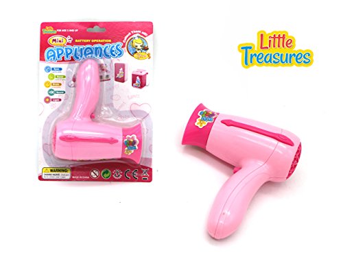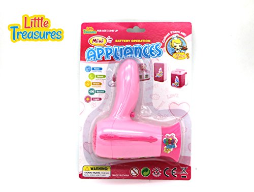 -. Feature : REALISTIC DESIGN: Mini Appliances blow dryer is a plastic constructed, safe to use toy appliance for the dresser collection of your daughter's pretty doll / Operated by AA battery cell, the tool has real-like air inlet and outlet grill and a perfect, curved handle. Fan in the dryer has a rotating blade. / VISUALLY STIMULATING: This toy device comes in a flashy, girly color of pink that will easily blend into the dresser toy collection of the young lady. Dark and light shades of pink are a perfect combination with realistic sound effect. / Mini Cute Appliance to add on to any pretend play Kitchen toy set / SATISFACTION GUARANTEED: - if you are not happy with the toy for any reason, you can get a hassle free refund.