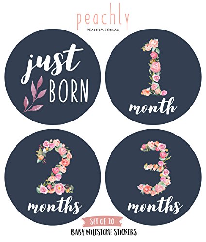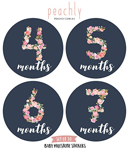 Floral Baby Monthly Milestone Stickers (Set of 20) - Birth to 12 Months + 7 Bonus Achievement Stickers