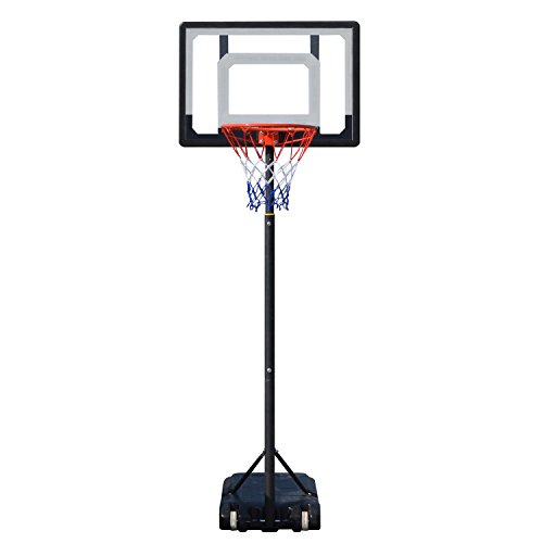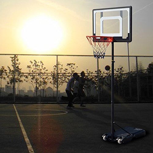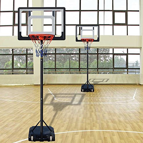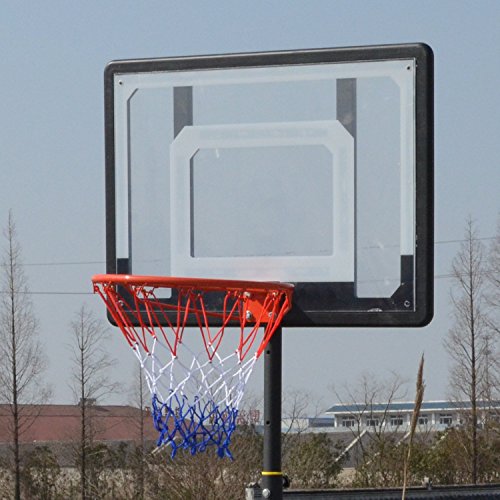 Material: Steel Frame and Rim, Clear PVC Backboard(PE Frame), Nylon net, PE Base Color: As Picture Show Backboard Dimension: 80 x 58cm/31.2 x 22.6inch Backboard to groung Height Adjustment: 215-260cm Rim to ground Height Adjustment: 165-210cm Main Tube Diameter: 4.5cm/1.8inch Rim Inner Diameter: 35cm/13.7inch 80cm durable PVC backboard, telescoping height adjustment from 215-260cm 35cm rim with welded steel net hooks and all weather nylon net Rust-proof painted steel structure With wheel on the base, portable and easy to move The base can be filled with 80% water or sand Package Content: 1 x Adjustable Basketball System Note: Due to the difference between different monitors, the picture may not reflect the actual color of the item. We guarantee the style is the same as shown in the pictures, but not the same performance on different bodies as on the model. Thank you! BTW,Our products are all in US warehouse, we usually send the goods off on the second day you order, they will reach you soon. 0 |