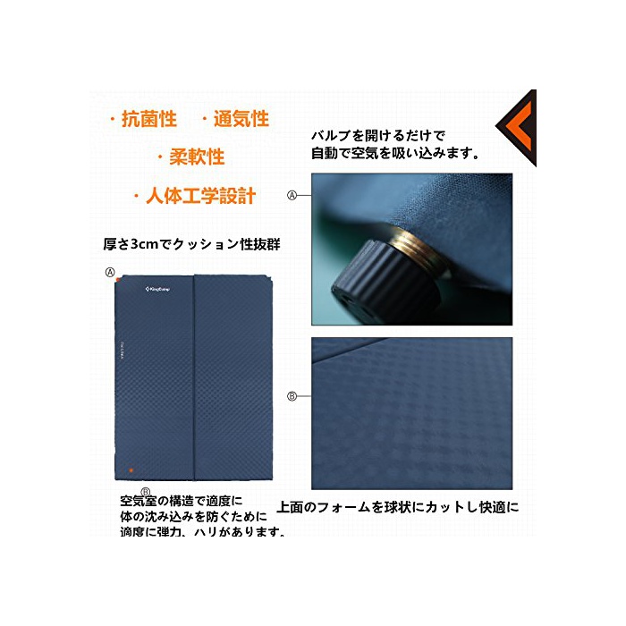 원본상품명: キングキャンプ キャンピングマット クラシックダブル 自動膨張式 キャンプ用マット ダブル 3cm厚 KM3538