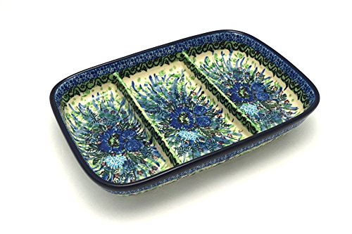 Studio : Ceramika Artystyczna Publisher : Ceramika Artystyczna Product Description 1 1/2"H x 6 1/2"W x 9 1/4"L Handmade and hand-painted in Poland This dish is divided into three sections and can be used to serve veggies, dips, condiments, and more! All of our Polish Pottery is safe for use in the microwave, dishwasher, and oven Unikat Signature - signed by the artist - Maria Starzyk divided dish , relish tray , condiment tray , serving dish , polish pottery , ca pottery , ceramika artystyczna , polish stoneware 0