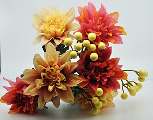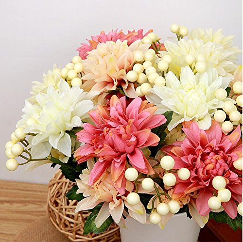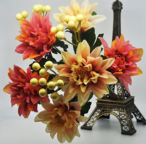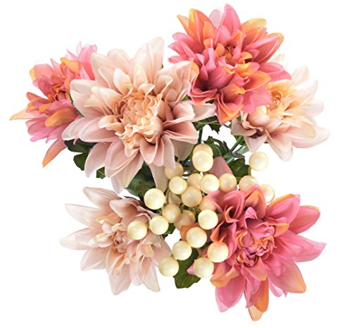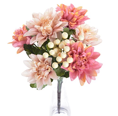 Pack of 2 Artificial Dahlia 16” Flower Bouquet 3 Stems 9 Heads Big Flowers for Home Party Decorations Wedding Favors - Pink