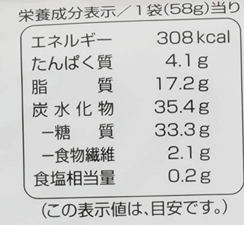 原材料:砂糖、植物油脂、全粉乳、小麦粉、乳糖、カカオマス、コーンフレーク、ココアパウダー、ショートニング、ぶどう糖果糖液糖、コーンフラワー、食塩/乳化剤(大豆由来)、膨張剤、香料