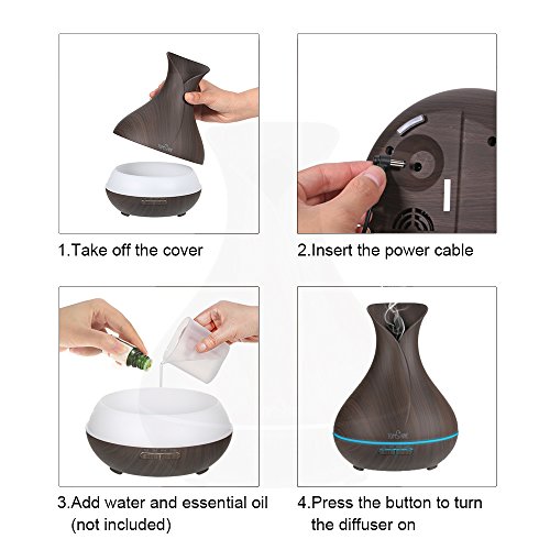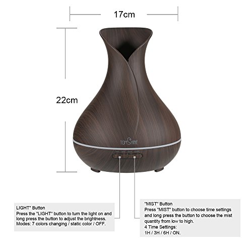 Tomshine 400ml Essential Oil Diffuser, Aromatherapy Cool Mist Air Humidifier with Wood Grain, Ultrasonic Humidifiers for Natural and Graceful Lifestyle