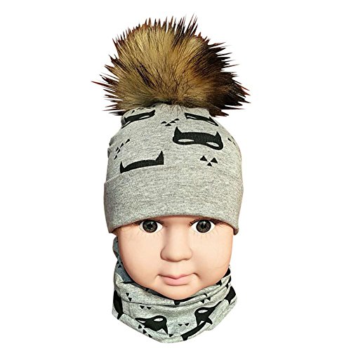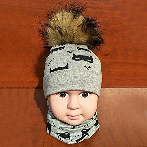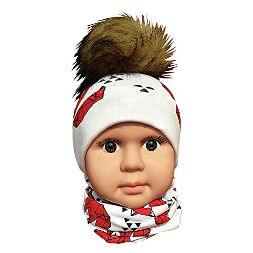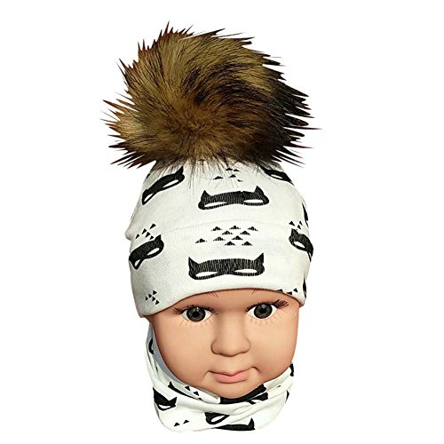 | (BAOBAOLAI)/Accessories/Cold Weather Accessories/DIRECT FROM USA/BAOBAOLAI Winter Baby Hat and Scarf Set, Kids Cartoon Pattern Beanie Cap with Faux Fur Pompom a... |