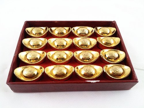 -. Feature : The sale is for a Feng Shui Gold Ingot / Yuan Bao and a gift bag with "Betterdecor" P.R.Inted on it / material: metal / 16 mini yuan bao in a box. Size of yuan bao : 1"x0.5"x0.5" / Color: gold / you may put in your home or office for wealth luck