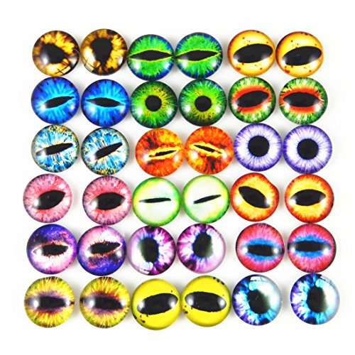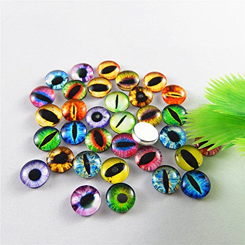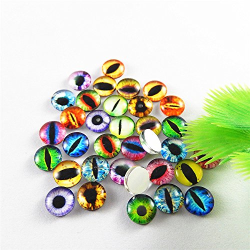 JulieWang 8mm 100pcs Mixed Style Dragon Eyes Round time gem cover Glass Cabochon Dome Jewelry Finding Cameo Pendant Settings