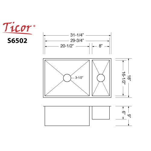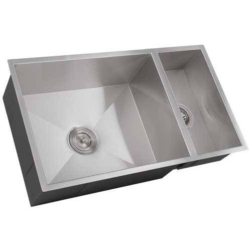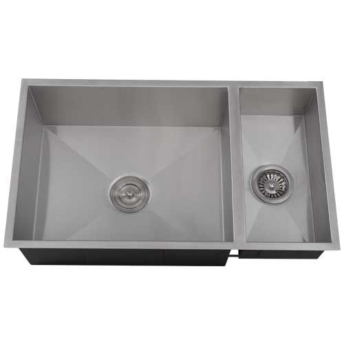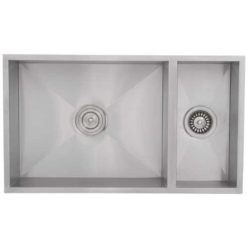 Phoenix 31-1/4" Undermount Double Bowl 16 Gauge Stainless Steel Square Kitchen Sink Zero Radius