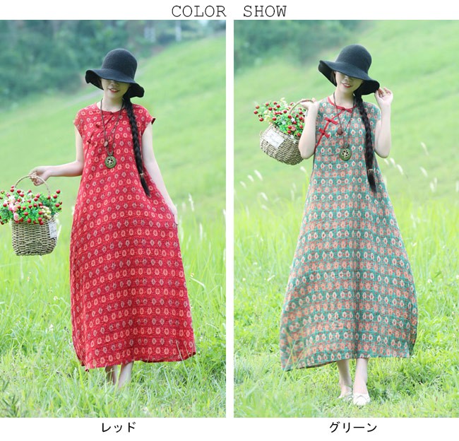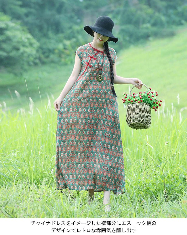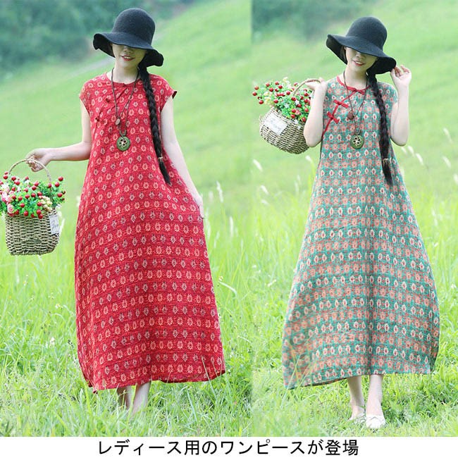 マキシ丈ワンピース 半袖 リネン レディース エスニック柄 チャイナドレス 女性用 レトロ ロングワンピ チャイナ服 半袖ワンピース ゆったりレディース用のワンピースが登場清涼感たっぷりの麻混紡素材を厳選、夏に爽やかな肌触りをもたらす半袖仕様に大きめのサイズ感でさらなる解放感たっぷりの着心地チャイナドレスをイメージした襟部分にエスニック柄のデザインでレトロな雰囲気を醸し出すマキシ丈仕様に裾部分のナチュラルな垂れ感でとても上品でフェミニンな気質を演出カラー:レッド グリーン素材 麻混紡サイズ(cm) L XLL 総丈120 バスト102 肩幅38XL 総丈122 バスト106 肩幅39ご注意:※サイズは平置きサイズです。素人採寸ですので、若干の誤差がございます、ご了承ください。