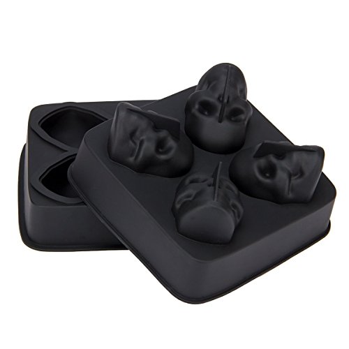 3D Skull Silicone Ice Cube Tray Mold, Makes Four Giant Skulls, Ice Cube Maker in Shapes for Chilling Bourbon, Whiskey, Cocktail, Beverages and More, Black