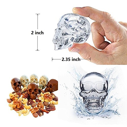 - MAKES YOUR DRINK LOOK AWESOME & KEEPS IT COOL LONGER – Four giant skull shape ice cubes (2" X 2.3") make your drink look awesome. Keep your cocktail or beverage chilled longer without watering down your drink. Nothing is worse than when you have the perfect cocktail or beverage recipe and half way through your drink, it has become diluted and doesn’t taste the same