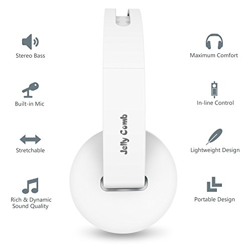 On Ear Headphones with Mic, Jelly Comb Foldable Corded Headphones Wired Headsets with Microphone, Volume Control for Cell Phone, Tablet, PC, Laptop, MP3/4, Video Game