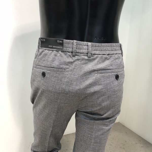 크롭 뉴 슬림 핏 팬츠 입니다. 뒷쪽에 밴드가 들어간 스타일로 편안하며 베이직한 뉴슬림한 핏으로 다양한 아이템과 코디가 용이하며 양 사이드 백 포켓 디테일로 수납이 가능한 제품입니다.