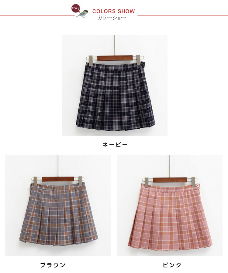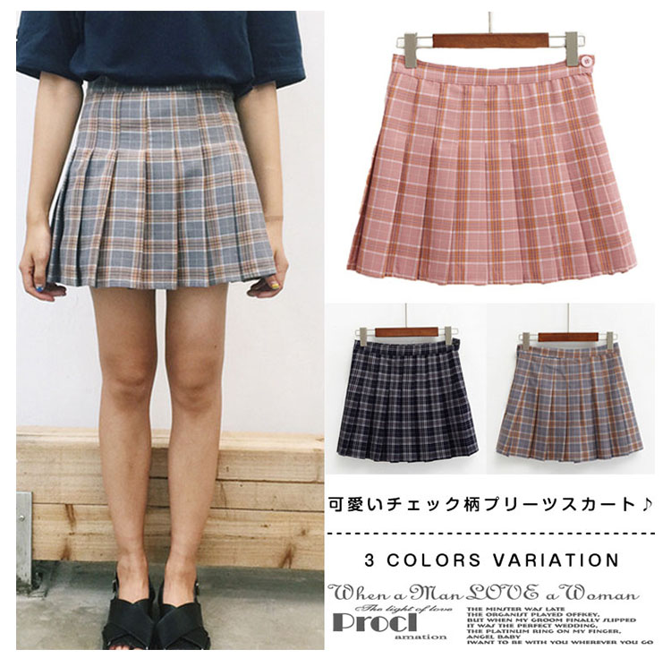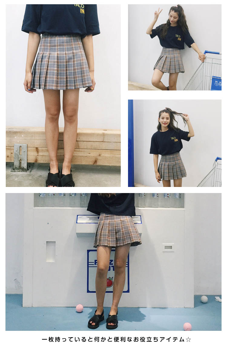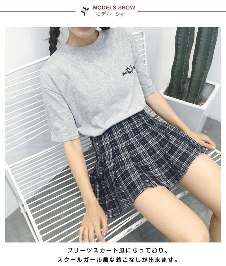 | 可愛いチェック柄プリーツスカート♪プリーツスカート風になっており、スクールガール風な着こなしが出来ます。インナーパンツも付いてちら見え防止で透けにくくなっています。 流行のハイウエストデザインはトップスをインしてコーデしてもカワイイ一枚持っていると何かと便利なお役立ちアイテム☆ | |