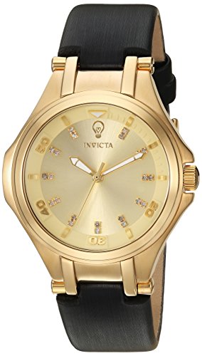 Invicta Women's 'Gabrielle Union' Quartz Gold-Tone and Leather Casual Watch, Color:Black (Model: 23256)