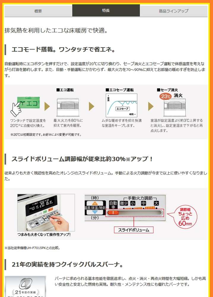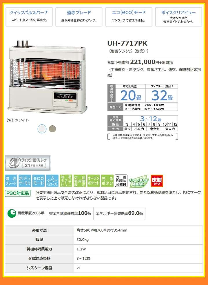 ●石油暖房能力:6.71kW床暖房併用時は7.66kW