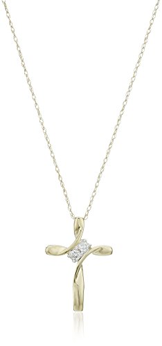 -. Title : 10k Diamond 2-Stone Cross Pendant Necklace (1/10cttw, I-J Color, I2-I3 Clarity)