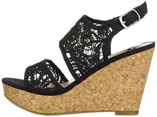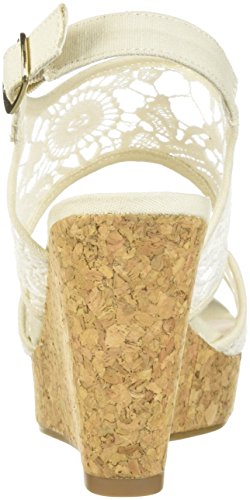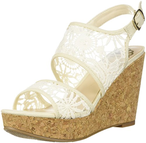 Product DescriptionBeautiful wedge sandal with buckle closure and floral crochet detailing, 3.5 inch wedge.0