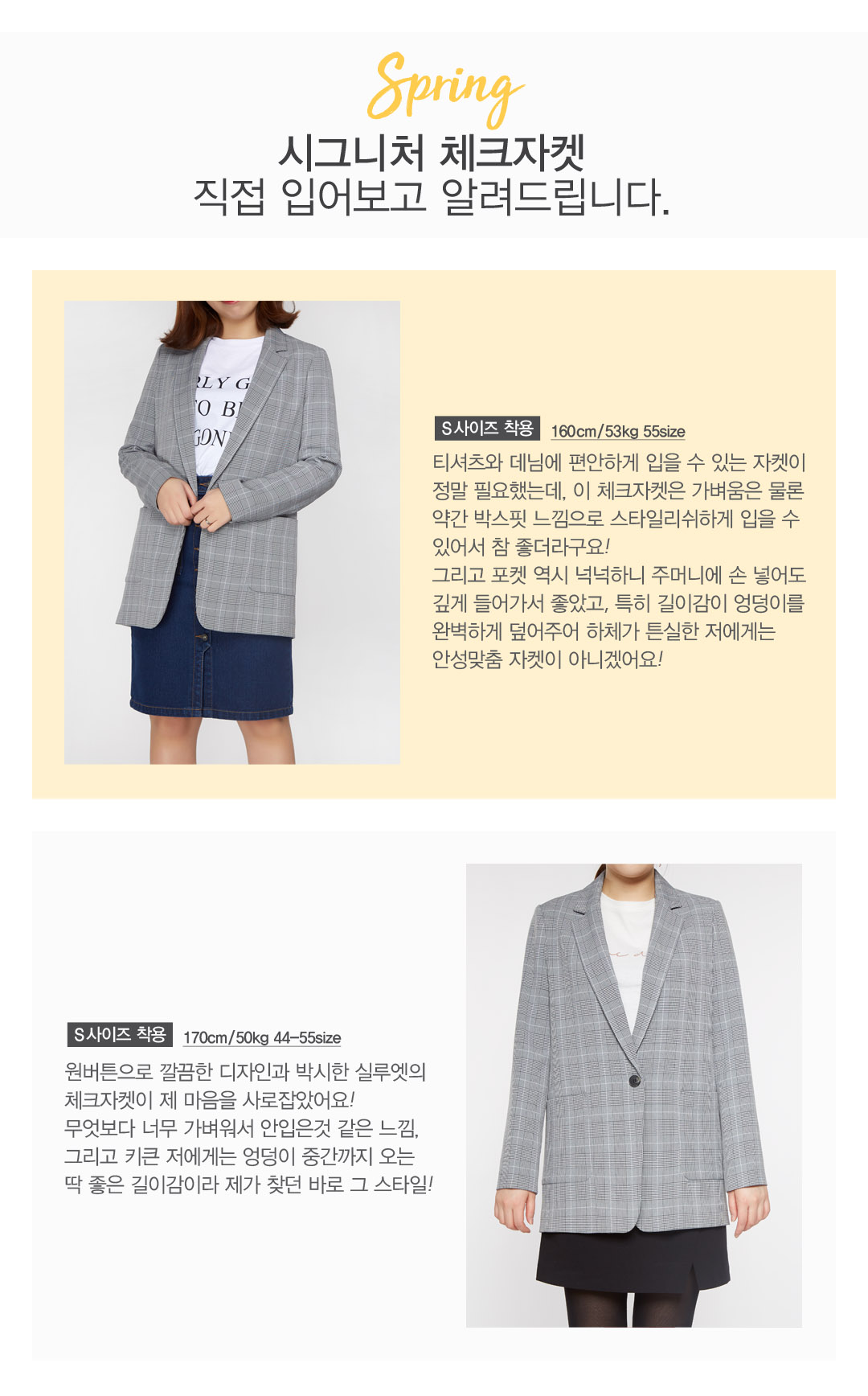 - 꾸준히 사랑받는 세미오버핏의 체크자켓으로 다양한 아이템과 쉽게 매치할 수 있어 활용도가 높습니다.