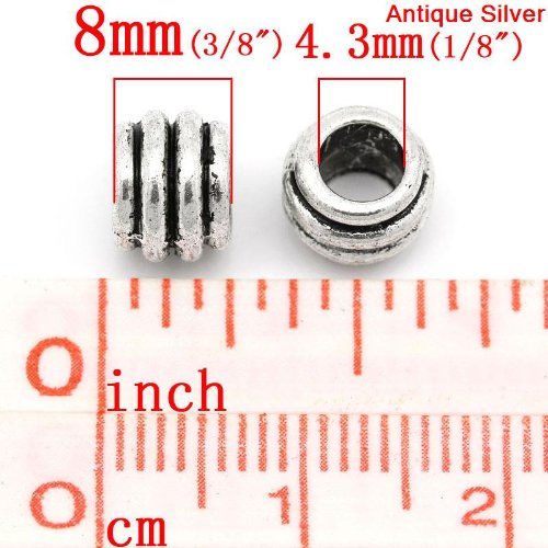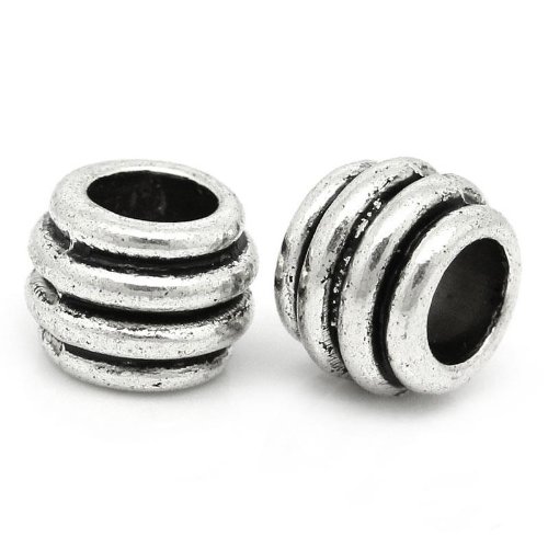 100pc Antique Silver Stripe Spacer Beads Large Hole Fits European Bracelets