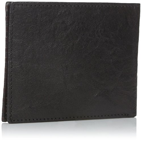 Tommy Bahama milled Italian leather slim fold with basket weave contrast leather detail.