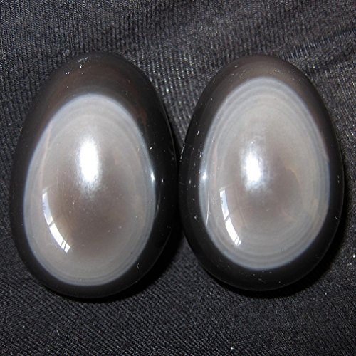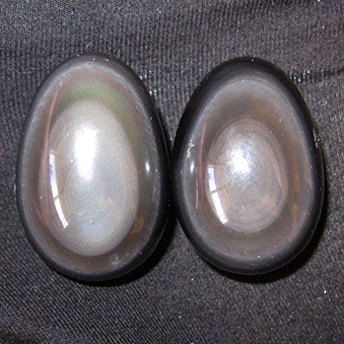 Obsidian Egg Rainbow 69 Pair of Blue Grey Angel Eye Crystals Manifestation Meditation Wish Come True Stones 1.8"