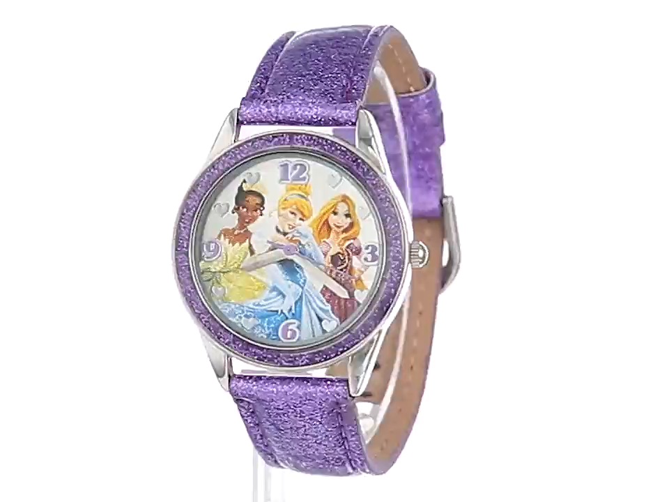 Disney Kids' PN1137 Princess Watch Watch with Glittery Purple Band