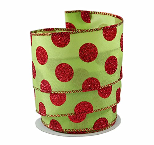 (Party Explosions)/Stationery Party Supplies/Gift Wrapping Supplies/DIRECT FROM USA/Polka Dotted Glitter Red on Lime Christmas Satin Wired Ribbon #40 - 2.5in x 10 yards