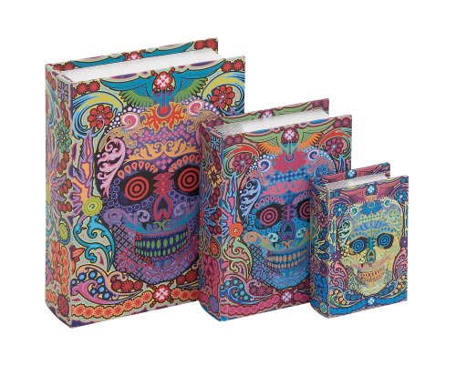 Plutus Brands Wood Canvas Book Box with Detail Work, Set of 3