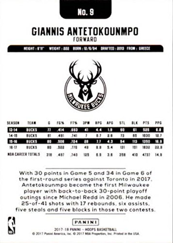 Milwaukee Bucks 2017 2018 Hoops Basketball Factory Sealed 9 Card Team Set with Giannis Anetokounmpo and Rookie cards of DJ Wilson and Sterling Brown plus