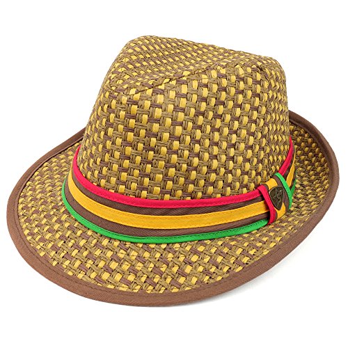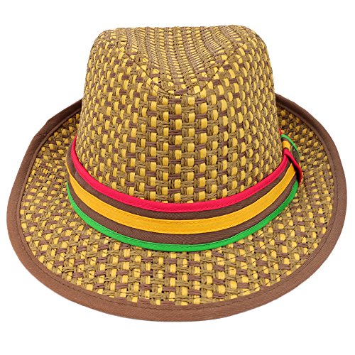 Binding : Apparel Product Description Our Trendy Apparel Shop Two Tone Paper Woven Straw Fedora Hat with Rasta Band is great especially for those Rasta fans out there. This paper woven straw fedora is accented with a Rasta colored hat band. Made of 100% Paper Straw. Crushed top crown. Upturned back brim. A rasta hat band around the crown. Fully lined inside. One size fits most. 0