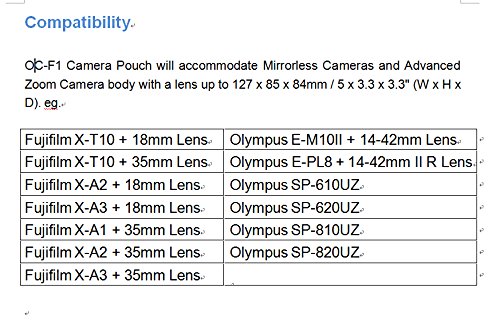 OC-F1BK Mirrorless Camera Pouch for Fujifilm X-T10/X-A2/X-A3 +35mm F2/ 18mm F2 Lens & Olympus E-PL8/E-M10 II + 14-42mm Lens & Olympus SP-610UZ SP-620UZ SP-810UZ SP-820UZ
