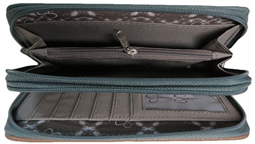(Fancy Jessica Simpson)/Accessories/Wallets, Money Key Organizers/DIRECT FROM USA/Jessica Simpson Women's Double Zip Around Wallet, Size 8"x4", Green/Grey