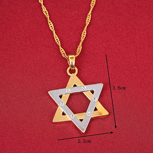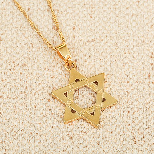 -. Binding : Jewelry -. Brand : CB Gold Jewelry -. Department : womens -. Feature : 24K gold vacuum plating high quality pendant chain / Guarantee 2 years avioding fading color / Nickel free and lead free with gold overlay / Environmental brass alloy and 24K real gold plated / Best gift for your friend, family, lovers and so on -. Label : CB Gold Jewelry -. Manufacturer : CB Gold Jewelry -. Model : G118 -. MPN : G118 -. PartNumber : G118 -. ProductGroup : Jewelry -. ProductTypeName : FASHIONNECKLACEBRACELETANKLET -. Publisher : CB Gold Jewelry -. Studio : CB Gold Jewelry -. Title : 18K Gold Plated Jewish Jewelry Magen Star of David Pendant Necklace Women Men Chain