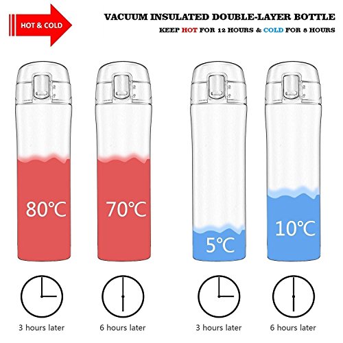 HIWILL Vacuum Insulated Mug fits two regular coffees for you. It keeps your coffee hot after a day. One handed operation for on-the-go drinking, rather than having to mess about pouring a cup like other thermos, just unlock, push the button and drink.