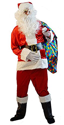 -. Feature : TWO SIZES AVAILABLE. / THIS IS A GREAT SANTA SUIT THAT REALLY DOESNT BREAK THE BANK. / IT IS A RICH RED PLUSH VELVET STYLE FABRIC JACKET & TROUSERS WITH FAKE FUR TRIMMING. ALSO INCLUDED IS A SANTA HAT, A WIG & BEARD SET, BOOT SPATS, WHITE GLOVES ,GOLD RIMMED GLASSES, LONG BELT & A LARGE SATIN COLOURFUL SACK. PERFECT SIZE FOR MOST PRESENTS. THIS COSTUME ALSO COMES WITH AN INFLATABLE TUMMY THAT IS WORN BY TYING IT AROUND THE WAIST. / BUYERS PLEASE NOTE: THE GLOVES, HAT & GLASSES ARE ONE SIZE ONLY. / PLEASE NOTE: WE ARE A UK SELLER. ALL OF OUR ITEMS ARE LISTED IN UK SIZES. PLEASE SEE OUR SIZE CHART BEFORE ORDERING AS SIZES MAY DIFFER TO THOSE IN THE USA. IF YOU HAVE ANY PROBLEMS OR QUERIES PLEASE MESSAGE OR CALL US ON 01978 661046 THANK YOU.