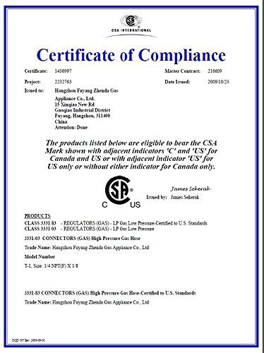 CSA listed regulator/hose for use on gas grills, heaters and much more