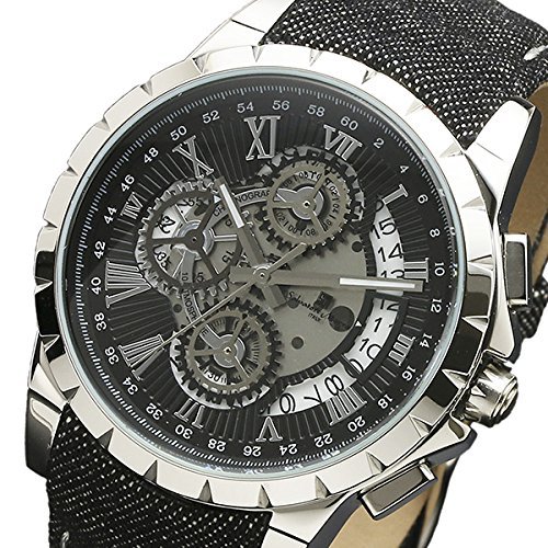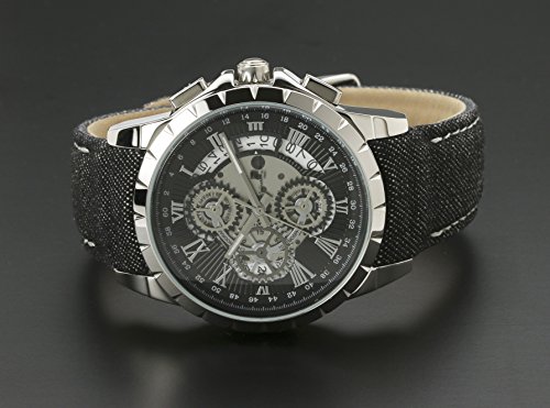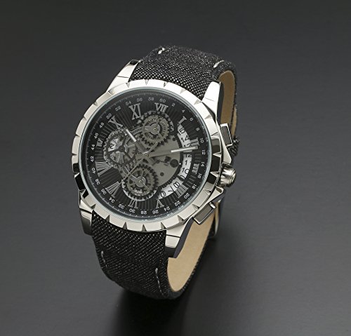 쿼츠,10기압 방수,크로노그래프(1/1 초계,1/10 초계,60 분적산계)고, 날짜 표시,월 차이±20초,컬러:블랙×실버(문자판)고, 블랙(벨트) 벨트 소재는 데님(표면)와 레더(안감)