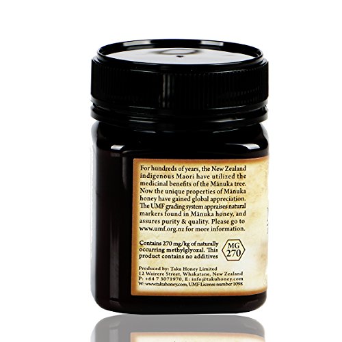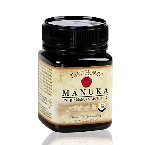 The Unique Manuka Factor (UMF) rating is extremely important when comparing manuka honeys. Most authentic manuka honey is sold under the UMF. The UMF grading system appraises natural markers found in manuka honey and assures purity and quality. Each Taku Honey UMF manuka honey jar states its level of naturally occurring methylglyoxal (MG). MG has been identified as one of the main organic compounds responsible for the stable anti-bacterial activity for which manuka honey has become globally renowned. Taku Honey states the MG content of its honey, as well as its UMF level, so that direct comparisons can be made with other manuka honeys that show MG content on their labels. Products claiming to be manuka honey but showing neither a UMF nor an MG rating are unlikley to be genuine.