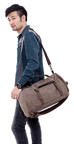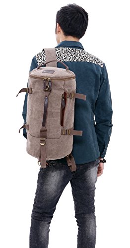 -. Binding : Personal Computers -. Brand : Xiebag -. Feature : Material: Premium canvas and leather, polyester lining. Strong and durable. / Approx Dimensions: 12" L x 19" H x 11"W Capacity: 36L ( Fits most 17 inch laptop ) / Multi-purpose uses: It can be used as a backpack, a shoulder bag and a tote bag. One bag offers at least three different ways to carrying. / It's a cylindrical canvas backpack ,big capacity ,easy to carry,you can use as a travel bag,outdoor bag,hiking bag,gym bag or a lage bag. / Vintage And Casual Look: It's a very good backpack for working, short traveling, college, school and everyday using. -. Label : Xiebag -. Manufacturer : Xiebag -. ProductGroup : PC Accessory -. ProductTypeName : CARRYING_CASE_OR_BAG -. Publisher : Xiebag -. Studio : Xiebag -. Title : Xiebag Portable Men's Canvas Backpack Outdoor Hiking Travel Rucksack Gym Satchel Duffle Lage Bag