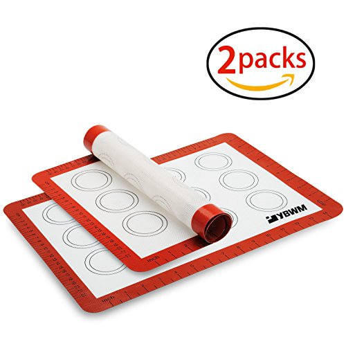 Non Stick Silicone Baking Mat Set, YBWM Professional Grade Half Size Cookie Sheets for Baking Pans-2 Packs (Size: 16.5 x 11.6 Inches)
