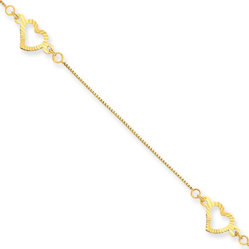 -. Binding : Jewelry -. Brand : The Black Bow -. Color : Yellow -. Department : womens -. Feature : Crafted from 14 karat yellow gold / Polished and diamond-cut finish / Features two 7mm open heart charms / Adjustable 8-9 inches in length / Includes our custom gift box -. Label : The Black Bow -. Manufacturer : The Black Bow -. Model : A8308-09 -. MPN : A8308-09 -. NumberOfItems : 1 -. PackageQuantity : 1 -. PartNumber : A8308-09 -. ProductGroup : Jewelry -. ProductTypeName : FINENECKLACEBRACELETANKLET -. Publisher : The Black Bow -. Studio : The Black Bow -. Title : Black Bow Jewelry 14k Yellow Gold Adjustable Heart Anklet, 9 Inch